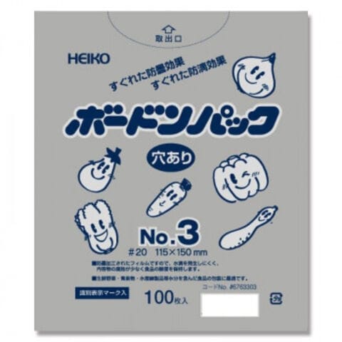 | 曇りにくく、水滴がつきにくいので、農産物・青果物の包装に適しています。生鮮野菜、果物を扱う青果店やスーパーなどの販売店、農家、市場におすすめ。通気性を良くするため、空気穴があります。食品衛生法規格基準適合商品です。 |