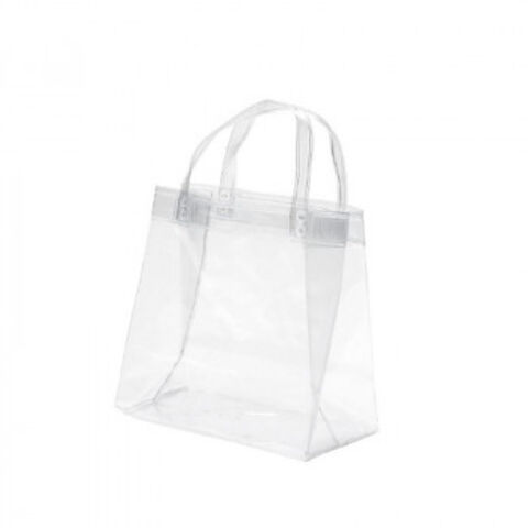 透明な塩化ビニール製の手提げ袋です。水気にも強いので、水着入れやセール時の未清算商品の持ち運び、売り場での店員の私物入れなど幅広くご使用いただけます。