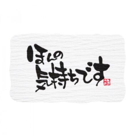 | 和紙風のクレープ紙に「ほんの気持ちです」の文字が入ったシールです。ちょっとした贈り物にお使いください。 |