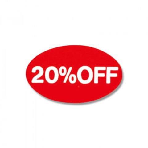 | 少し小さめ(13×22mm)の楕円形の20%OFFシールです。 |