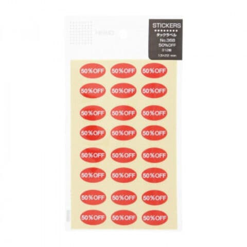 | 少し小さめ(13×22mm)の楕円形の50%OFFシールです。 |