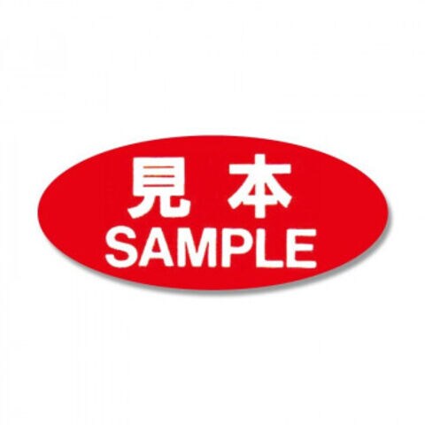 | 商品サンプルであることを表示するシールです。視認性の高い赤ベタに白文字表記。 |