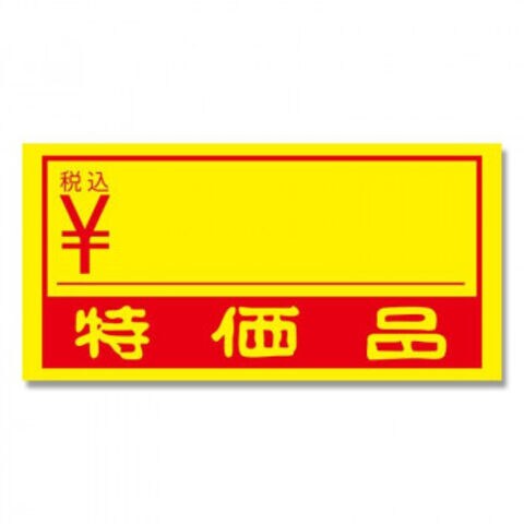 | 昔ながらの特価品用ラベルです。空きスペースに価格を書き込んで使用します。黄色い紙に赤のデザインで視認性が良い配色です。 |