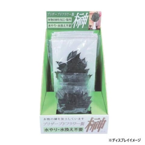 | プロショップ向けの販売用ケースに入ったプリザーブド榊のセットです。販売促進用POPをお付けしておりますので、店頭でのディスプレイ販売に最適です。 |
