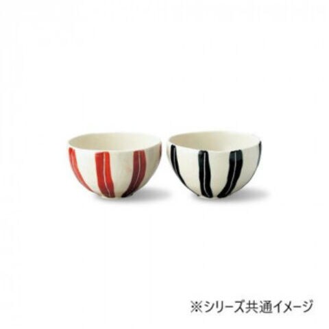 | 黒と赤の十草模様がそれぞれほどこされた丼ぶりです。磁器土のため、丈夫で電子レンジにも使用できます。一つ一つ丁寧な手仕事で絵付け施釉された、現代のライフスタイルに合わせた和モダンの器。左右非対称なアンバランス(アシンメトリー)な形状が、ゆらぎと共にほっこりとしたシェイプを醸し出します。 |