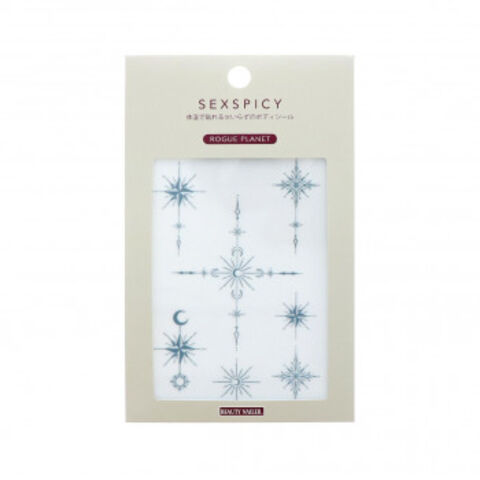 | 体温で貼れる、水不要のボディシールです。 【ご使用方法】 1.貼りたい部分の汚れや水分を拭き取り、肌を清潔にしてください。貼りたいデザインをカットし、台紙を剥がします。 2.デザインがついている面を肌にのせます。 3.フィルムの上に手を添えて10秒ほど温めます。 4.肌に貼れていることを確認しながらフィルムをそっと剥がして下さい。貼り付け部分や使用環境により差がありますが平均で3?4日保持します。 ※シールを剥がす際はぬるま湯で優しくこすってください。 【ご使用上の注意】 ・目の周りや粘膜部分および傷やかぶれ、アレルギーが有る場合を含める敏感肌の方は貼付しないでください。 ・1週間以上のご使用はお避け下さい。 ・貼付後、肌に異常を感じた場合はすぐに使用を中止し、医師にご相談下さい。 ・火気の近くや直射日光、高温多湿を避けて冷暗所で保管して下さい。 ・開封後はお早めにご使用下さい。 ・小さなお子様の手の届かない場所に保管して下さい。 |