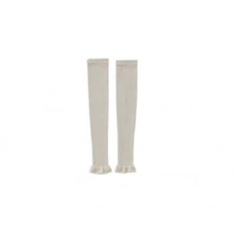 | フリルが特徴の2WAYで使用できるアームレッグカバー。女性らしいフリルがあることで手をいっぱいに広げた時つっぱることがなく広げれます。レッグカバーとして着用した場合足首下までカバーすることができます。 |