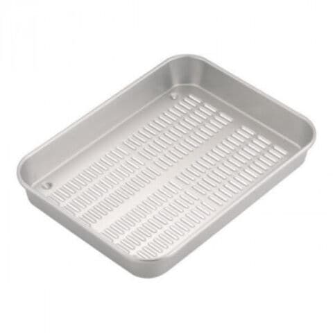 | 大型サイズながら軽量で使いやすく、穴あき加工により水切り・油切りに最適な業務用バットです。硬質アルマイト加工されたアルミ素材は、錆びにくく丈夫で、長くご使用いただけます。 |