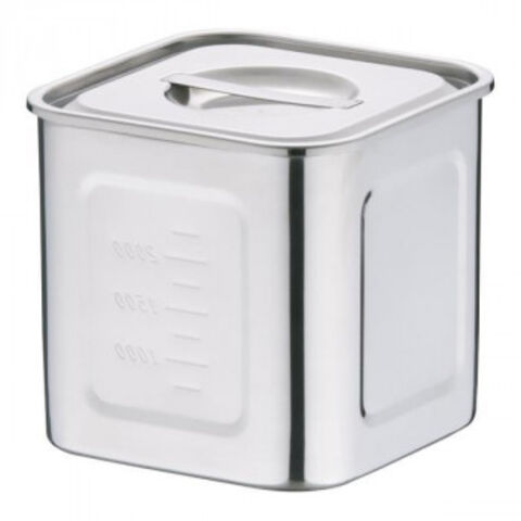 | 角型ですので厨房スペースを有効に活用できます。積み重ねが可能です。又、ぬれた手でも取りやすい取手付きの蓋は、水気を中に落とさない設計になっています。便利な目盛付です。 |