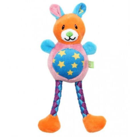 | 目に鮮やかなビタミンカラーのクマ型ぬいぐるみにスクウィーカーが入っています。足はTシャツ生地を編んだロープになっています。柔らかいおもちゃが好きなワンちゃんにおすすめです。 【注意事項】 ※本製品は犬用おもちゃです。本来の用途以外には使用しないでください。 ※誤飲やいたずらを防ぐため飼い主様の目の届く場所で使用し、壊れかけた場合は直ちに使用を中止し新しいものに交換してください。 ※飲み込んでも害のない素材を使用していますが、万一誤飲した時は獣医師に相談してください。 ※おもちゃを投げて遊ぶときは、周囲の安全を十分に確認してください。 ※幼児やペットの手の届かない場所に保管してください。 |