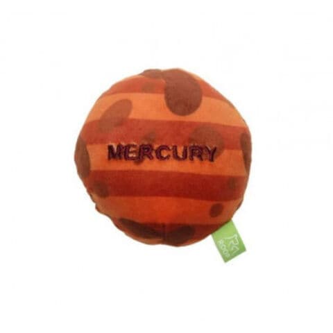 「ループスモル」は、手のひらサイズの小さくて可愛いぬいぐるみ系おもちゃです。正面に星の英語名が刺繍してあり、中にはスクウィーカーが入っています。MERCURY(マーキュリー)は、クレーターが特徴的な水星をイメージして作られています。