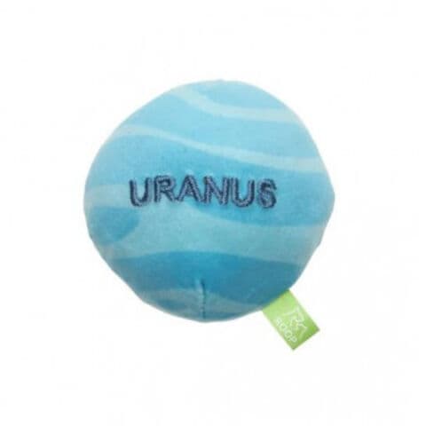 「ループスモル」は、手のひらサイズの小さくて可愛いぬいぐるみ系おもちゃです。正面に星の英語名が刺繍してあり、中にはスクウィーカーが入っています。URANUS(ユラナス)は、淡い青色の天王星をイメージして作られています。