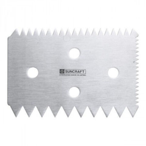 小型で4面使用できるコームです。波のピッチは3mm・5mm・10mm及び直線が使用できます。 小さめのケーキにも使いやすいです。4つの穴は指を添える便利な穴です。ご家庭で本格的な手づくりケーキを楽しみたい方のために開発されました。