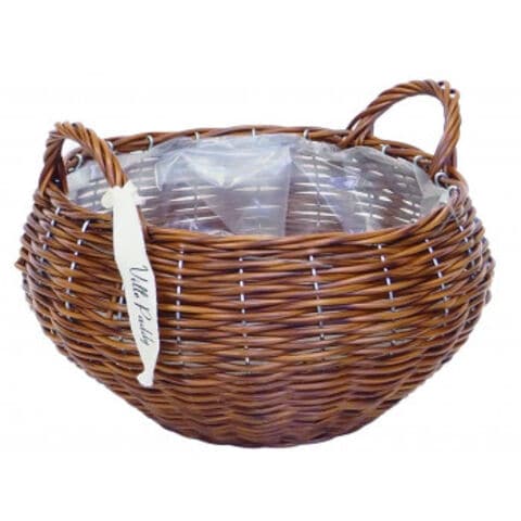 | 持ち手付きのラタンバスケットです。内側にビニールが付いているので観葉植物の土で汚れたり水で濡れたりすることを防ぐことができます。造花やドライフラワーなどのお花を入れてフラワーアレンジメントにも◎ |