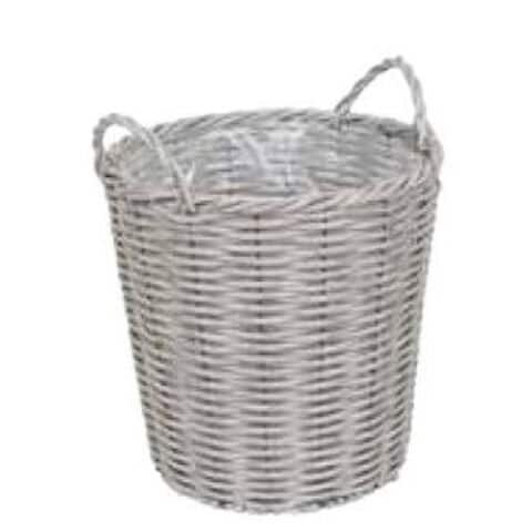 | 持ち手付きのプランターカバーです。内側にビニールが付いているので観葉植物の土で汚れたり水で濡れたりすることを防ぐことができます。 |