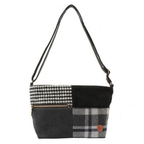 | 4種類の冬素材を組み合わせてパッチワークにしたショルダーバッグです。2種類のチェック柄とテクスチャーの異なる無地素材を組合わせました。多ポケット仕様で使いやすさにもこだわった舟型ショルダー。裏地にリサイクルポリエステル生地を使用しています。 |