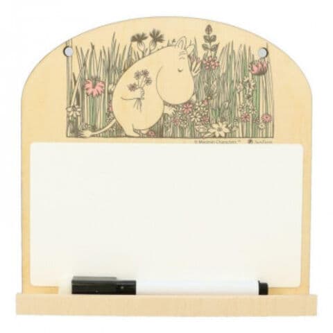 | ムーミンの絵柄がデザインされた木製のメッセージボードです。 |