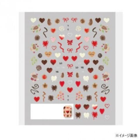 | バレンタインと言えば。ハートやチョコレートだけでなく、ナッツ、ソースなどトッピングやデコレーションも手描きしました。チョコレートでいっぱいの箱から好きなものを選ぶように、自分だけのバレンタインネイルを楽しんで作って頂けたら嬉しいです。しなやかフィットシート使用。 |