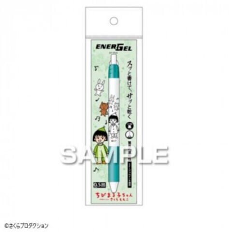 | ぺんてるのゲルインキボールです。軸にまるちゃんがデザインされています。 |