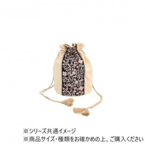 | インドの刺繍リボンを使用した、上品でどこかクラシックな雰囲気の巾着バッグです。お財布やスマートフォンを入れてさっとお出かけできるコンパクトなサイズが嬉しい。 |