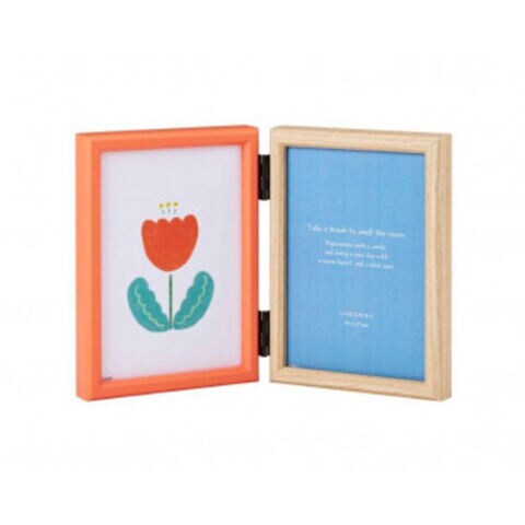 | 北欧テイストなカラーフレームシリーズに、折りたためる2面タイプが登場。少し丸みを帯びたフレームバーに、木目柄とアクセントカラーを組み合わせた配色で、楽しい空間を演出します。 |