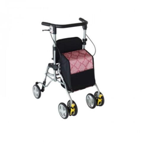 | 仕様 | 折りたたみ時:奥行33×高さ69cm 座面:幅31×奥行26cm 座面高:44cm ハンドル内幅:約37cm 車輪:前輪14.5×後輪14.5cm バッグ容量:8L 積載荷重:5kg 最大使用者体重:75kg 標準機能:折りたたみ、3WAYキャスター(360度・左右60度・固定)、手元ブレーキ、駐車ブレーキ、座面、杖・傘立て |