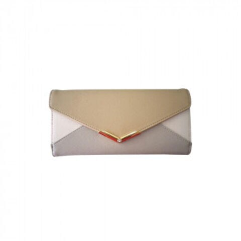 ゴールドのプレートの中央にビジューをあしらい、高級感溢れるデザインに。切替カラーでより華やかな高見えお財布に仕上げました。使いやすいフラップタイプ。小銭入れはL字ファスナーで取り出しやすく、仕切り付きで整理もしやすくしました。背面もオープンポケット付きで、定期やICカードなどの収納に便利なこだわりを詰め込んだお財布です。