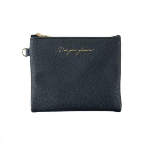 | 上品なシボ感のある合皮生地に英字箔押しロゴをプリントしました。miniサイズだから、ちいさめBAGにも入ります。背面にはティッシュケース付き。リップや手鏡など小物収納におすすめです。側面にはDカン付き。 |