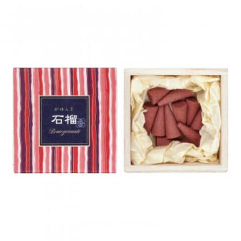 | 自然界に存在する独特な『ゆらぎ』の世界は、私たちに快適な感覚を与えてくれます。植物が成長するさま、波音、せせらぎ、色や光の変化など 自然の恵みから発せられる『ゆらぎ』は、わたしたちに快適な感覚を与えてくれます。ここちよい香りもその『ゆらぎ』のひとつかもしれません。「かゆらぎ」は、そんな自然の恵みを想起させる和風の香りをお香にしました。みずみずしく甘酸っぱい石榴(ざくろ)の香り。 コーン型(円錐形)のお香は、スティック型(棒状)に比べ、短時間でお部屋に香りが広がります。 |