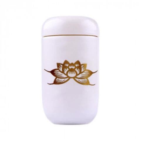 | 毎日ご先祖様に使う仏具・仏器は使いやすさ、シンプルさにこだわりました。白磁に金の蓮をあしらった、定番デザインの陶器製蓋付きマッチ消し。 |