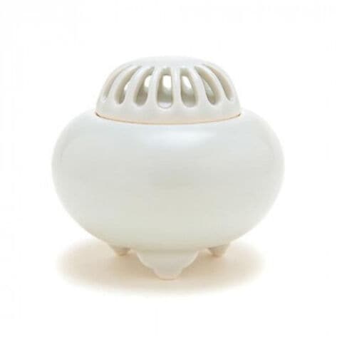 | 丸みのあるシンプルなかたちが人気の青磁の香炉。青磁とは、青味を帯びた灰釉を施した磁器質の焼物をいいます。その昔、中国の皇帝が翡翠の味わいを磁器により楽しむため、苦労の末人工的につくりだしたものです。日本では、江戸期に現在の伊万里市大川内山で青磁鉱石が発見されたことに始まり、現在も鍋島青磁として焼き続けられています。 一口に青磁と言っても、白に近いものから緑色っぽいもの、いろんな色が存在します。同じ青磁でも見る角度や光の当たり具合によりいろんな姿を見せてくれます。多種多色な青磁の香炉をお楽しみください。 (ご使用方法) 香炉の八分目ほどまで香炉灰をいれます。お香の先端に火をつけ、炎を消し、くゆらせます。灰の上に置いて、フタを閉めずにたいてください。フタを閉めてたきますと、酸欠となり、お香が途中で消える場合があります。小さな香炉の場合、スティック型は灰の上に立ててたいてください。たいていない間はフタを閉め、置物・インテリアなどとしてお楽しみください。 |