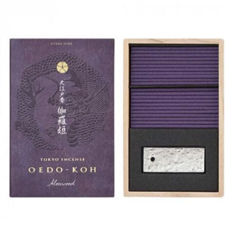 | 江戸の人々にとって憧れの的だった「伽羅」をイメージした香りです。パッケージの裏には浮世絵が描かれています。また、江戸の石畳を模した香立てもついています。江戸で位の高い人たちに人気だったといわれる錫製の香立ては水洗いも可能で、さびにくく長くお使いいただけます。英語による説明も表記されており、海外へのお土産にもおすすめです。 公家から大名などの富裕層へも広がりをみせた「香道」。庶民の間でも香木への想いは強く、歌舞伎や浄瑠璃の演目に艶やかに登場。さらに「伽羅の油」という生薬で香り付けした鬢付油も大ヒット。「伽羅」という言葉は」すてきなもの」を形容する表現にも使われました。 |