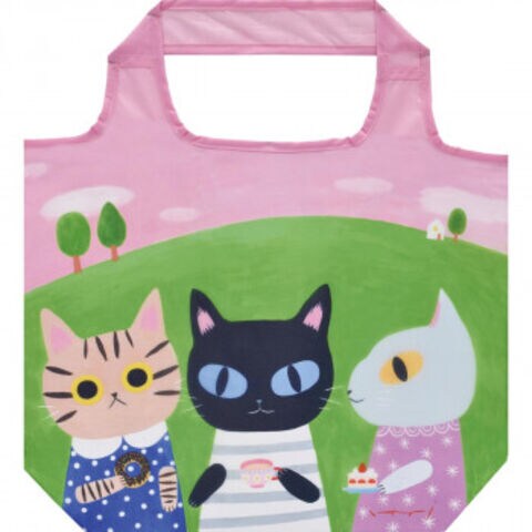 | 使い勝手の良いエコバッグにプリントされた元気いっぱいのねこたちと一緒にお出掛けしましょう。 |