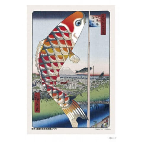中央の鯉のぼりを海外でも人気の高まっている錦鯉にアレンジした華やかな一枚です。泳ぐ芸術と称される錦鯉が空を舞う姿が目を引く一枚です。