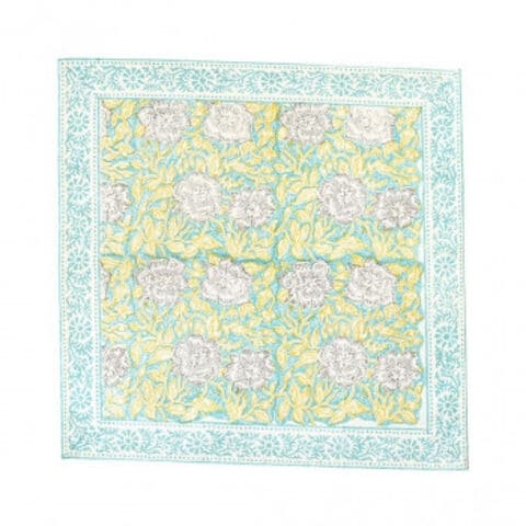 バンダナハンカチ フラワリーブロックプリント ブルー 13124004063