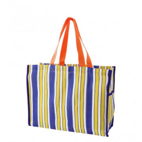 | 現地のマーケットバッグとして使われる、丈夫で水濡れOKの生地で、買い物・ジム・一泊旅行に便利なサイズ感です。 |