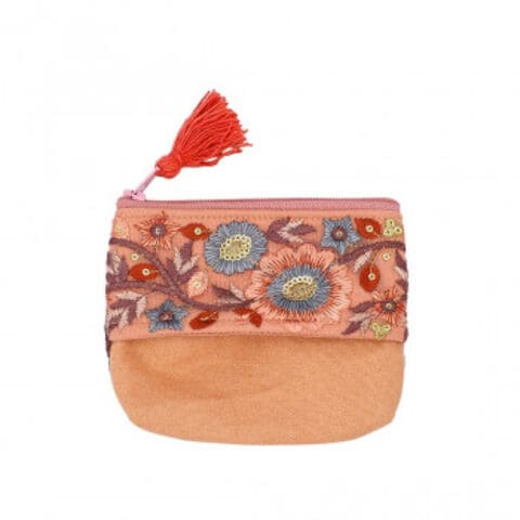 インド刺繍リボン ティッシュケース付ポーチ サーモンピンク 13124000411
