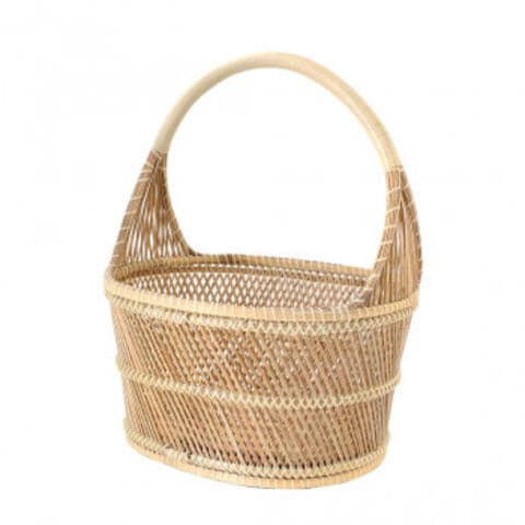 | 職人手作りの温かみを感じる素材感は、お部屋のインテリアに合わせやすいです。小物をまとめたり、植物を入れたり、お部屋に合った様々な使い方が楽しめます。手持ち部分にはビニールが巻いてあり持ちやすくなっています。 |