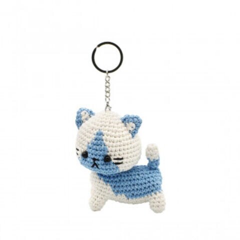 編みぐるみキーホルダー ネコ ブルー 10725008006