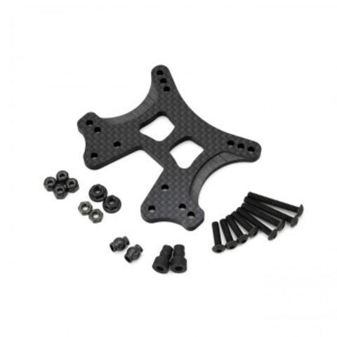 | 軽量&高強度なカーボングラファイト製ダンパーステイ。ダンパー保持剛性を大幅に高め、耐クラッシュ性の向上に加え、より正確なダンパー動作も実現。車体最前面配置されるため、ノーマルとは異なるレーシーで迫力あるスタイルへのドレスアップ効果もバツグンです。 |