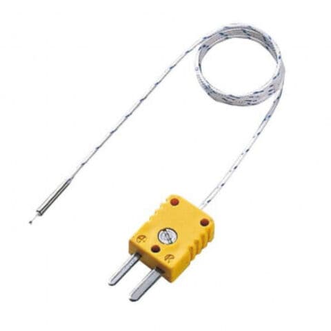 | 2種類の金属線をつなげて温度を測定。 ※液中の温度測定には使用できません。また、被覆に直接熱をかけないでください。 |