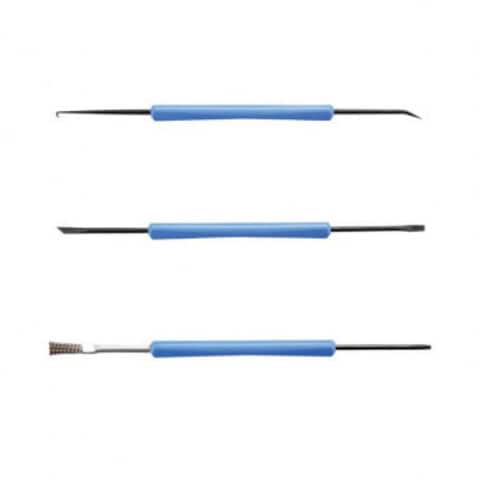 | プリント基板のハンダ作業補助器具で、スクレーパー、ブラシなど6種をセット。 |