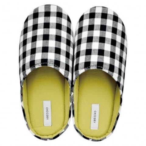 | チェックとカラー生地を組み合わせた、可愛いルームシューズです。どちらの生地もコットン100%なので、肌触りが良く、さらりと履くことが出来ます。 |