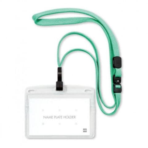 | 安全装置・長さ調整付。フック式。ポケットに差し込めます。名札が裏返らず常に正面を向きます。 |