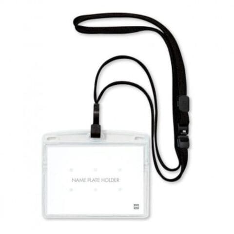 | 安全装置・長さ調整付。フック式。ポケットに差し込めます。名札が裏返らず常に正面を向きます。 |