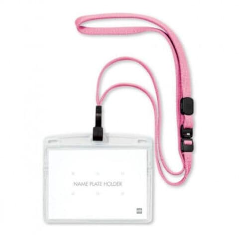 | 安全装置・長さ調整付。フック式。ポケットに差し込めます。名札が裏返らず常に正面を向きます。 |