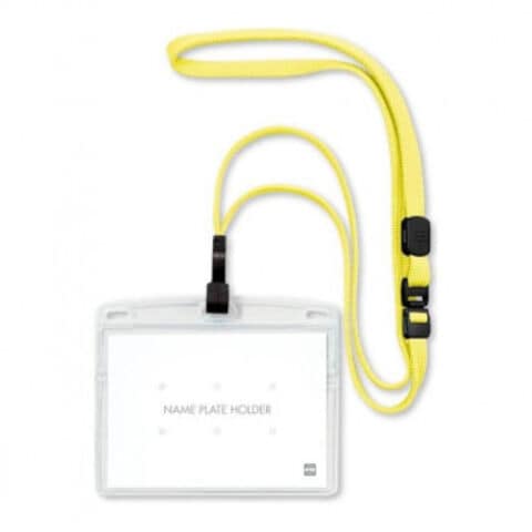 安全装置・長さ調整付。フック式。ポケットに差し込めます。名札が裏返らず常に正面を向きます。