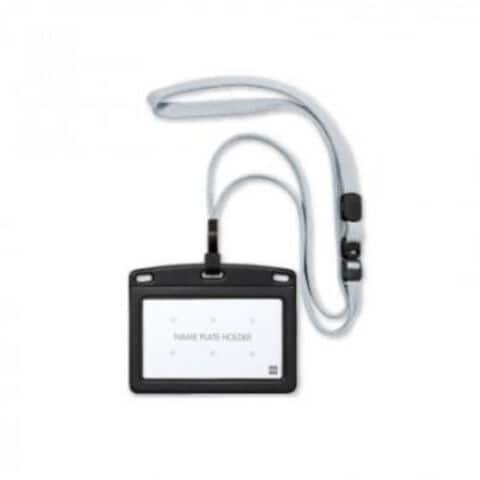 安全装置・長さ調整付。外れにくいフック式。ポケットに差し込めます。名札が裏返らず常に正面を向きます。名刺等のストックができる2ポケットタイプ。スライド式でカードが出し入れしやすい。