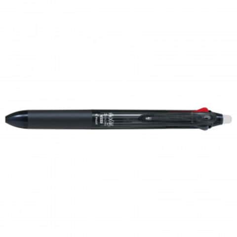 「フリクションボール3スリム」は、1本で3色を使い分けでき、何度でも書き消し可能な利便性の高い3色ボールペンです。インキ色は黒・赤・青のベーシックな1色。手帳や資料などの細かい箇所への書き込みに適しています。クリップは厚いものでもしっかり挟めます。携帯性に優れており、手帳のペンホルダーに差しやすい段差のないなめらかな形状です。インキ消去液などの化学式と異なり、消した箇所での繰り返し筆記が可能です。