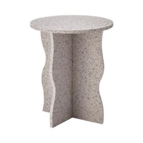 | テラゾー柄と呼ばれる石の様な模様を施したトレンド感のあります。表面は凹凸のある仕様になっております。波打つようなフォルムが特徴的な4枚の土台で構成された、置くだけでオブジェの様な雰囲気の出るサイドテーブル。裏面フェルトシールが付いております。 ※北海道・沖縄・離島など一部地域にはお届けできかねますのでご容赦ください。 |